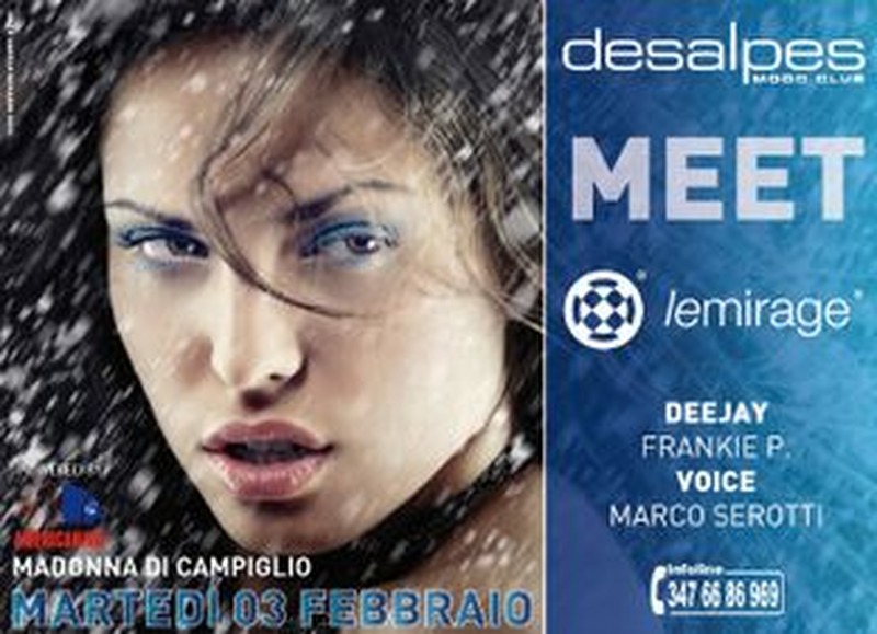 LE MIRAGE IN TOUR 03 Febbraio 2009 DESALPES incontra LE MIRAGE,martedi 3 febbraio Madonna di Campiglio-dj Franky P.-voice Marco Serotti. Segue...